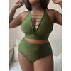 Large Size 4XL Women Textured Swimsuit High Waist Bikini Set Push Up Swimwear Backless Beachwear Brazilian Bathing Suits Biquini