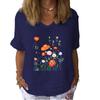 Women Fashion Linen Blouse Summer Casual Short Sleeve T-shirt Ladies Floral Print Pullover Loose Top