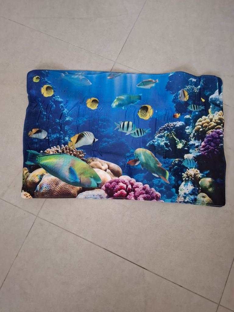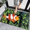3D Underwater Fish Bath Rug 4 Sizes Flannel Top with Latex Dots, Quick Absorbent Doormat for Shower Entrance Bedroom