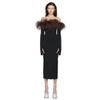 2023 Black Spring Ostrich Feather One-Shoulder Long Sleeve Bandage Dress for Women