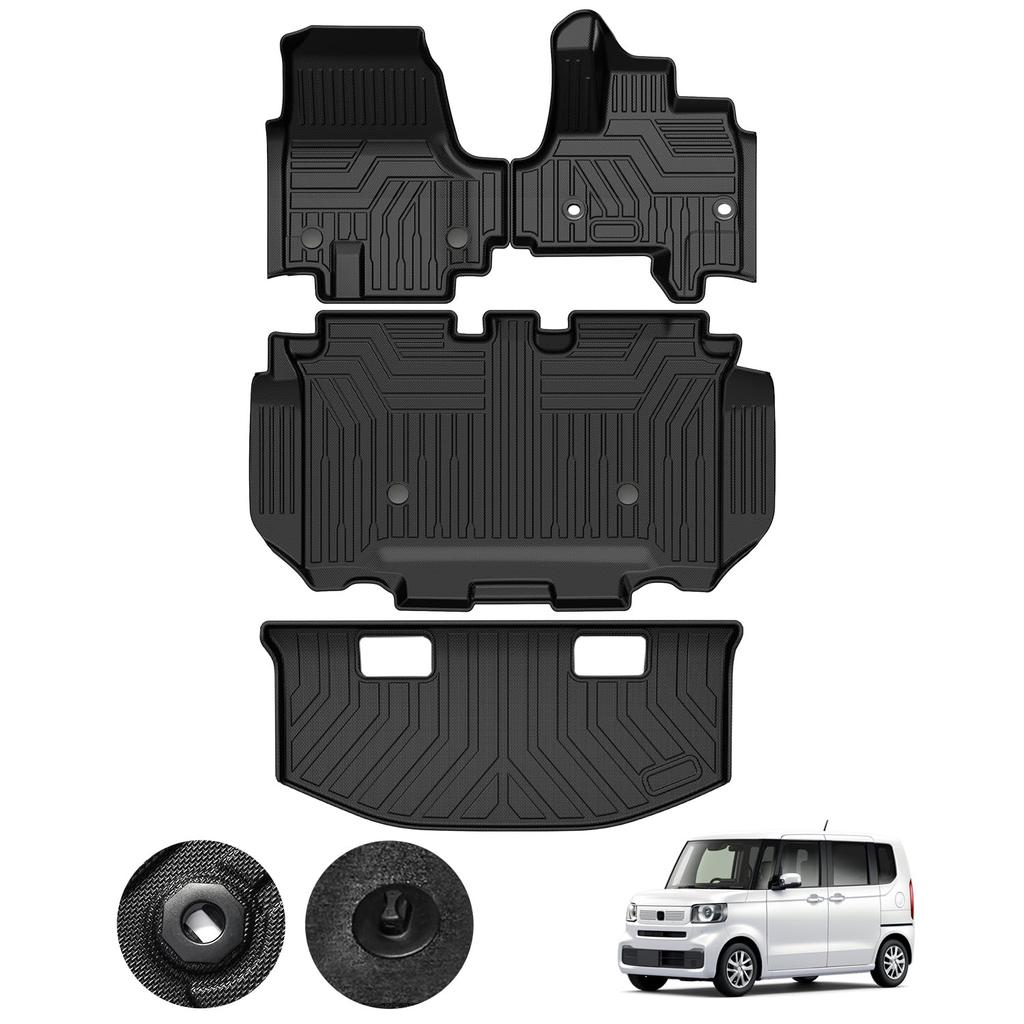 [Compatible models] Honda N-BOX JF5 JF6 JOY mat. Year: R5.10~Current. Set contents: floor mat x2P, second mat x1P, trunk mat x1P (4-piece set in total). *Before purchasing, please check the shape, car model, and model year in the image before placing your order.