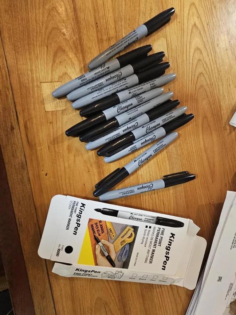 12pcs Black Permanent Marker Pens, Fine Tip, Waterproof, Quick Drying