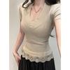 Summer Cotton Sexy Lace T Shirts Women‘s Deep V-neck Short-sleeve T-shirt Casual Slim Elastic Skinny Y2k Crop Tops Women Clothes