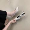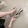 Step into elegance with these French-style pointed stiletto heels, perfect for the 2025 spring season. These chic sandals feature a closed toe design and a sophisticated back strap for added support and style. Crafted with a smooth microfiber upper and lining, they ensure comfort and a refined look. The durable rubber sole offers enhanced grip and stability, making them ideal for both day and night occasions. Whether you're attending a formal event or a casual outing, these heels will elevate your ensemble with their timeless elegance.