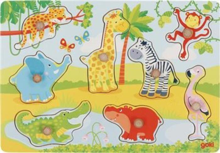 Puzzle en bois - bébés animaux - 8 éléments - boutons extra larges - animaux d'afrique