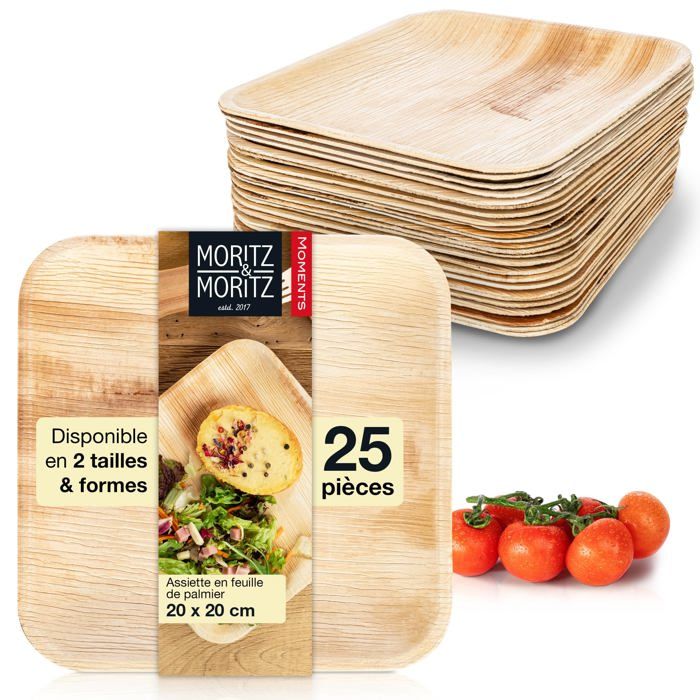 Assiette jetable - moritz - 4609 - 25 pièces - 20x20 cm - 100% biodégradable