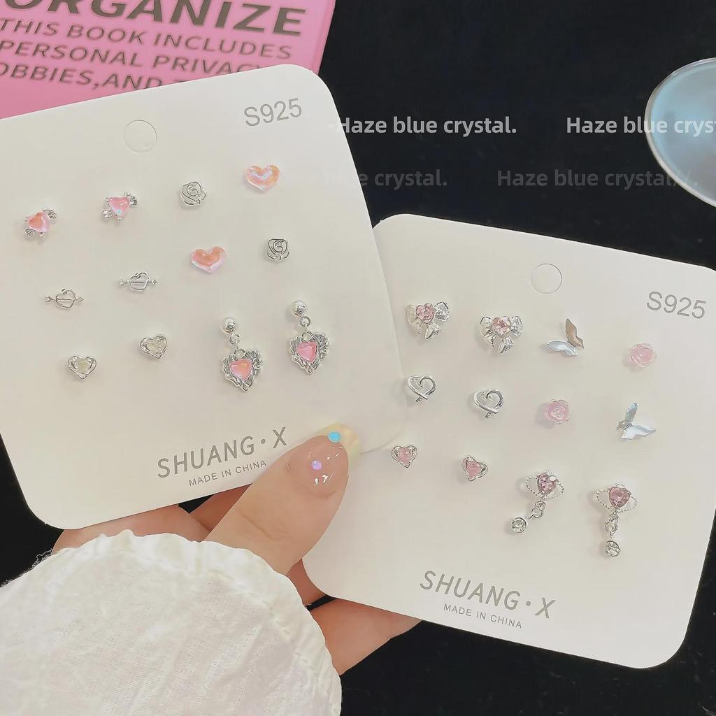Aurora Pink Diamond Silver Needle Earrings Set - Unique Planet Pendant Design for a Touch of Timeless Elegance.