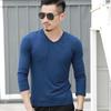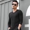 Men's Solid Color Long-Sleeve V-Neck T-Shirt - Casual Spring/Autumn Bottoming Shirt