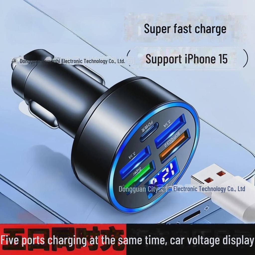 Universal 5-Port Fast Charging Car Charger and Converter for Cigarette Lighter