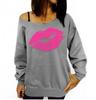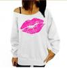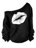 European & American Women's Red Lips Pattern Off-Shoulder Loose Fit Long Sleeve Sweater