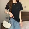 Solid Color Round Neck White Front Shoulder Short-sleeved T-shirt for Women In Summer Loose Slim Bottom Shirt Top Short-sleeved Women
