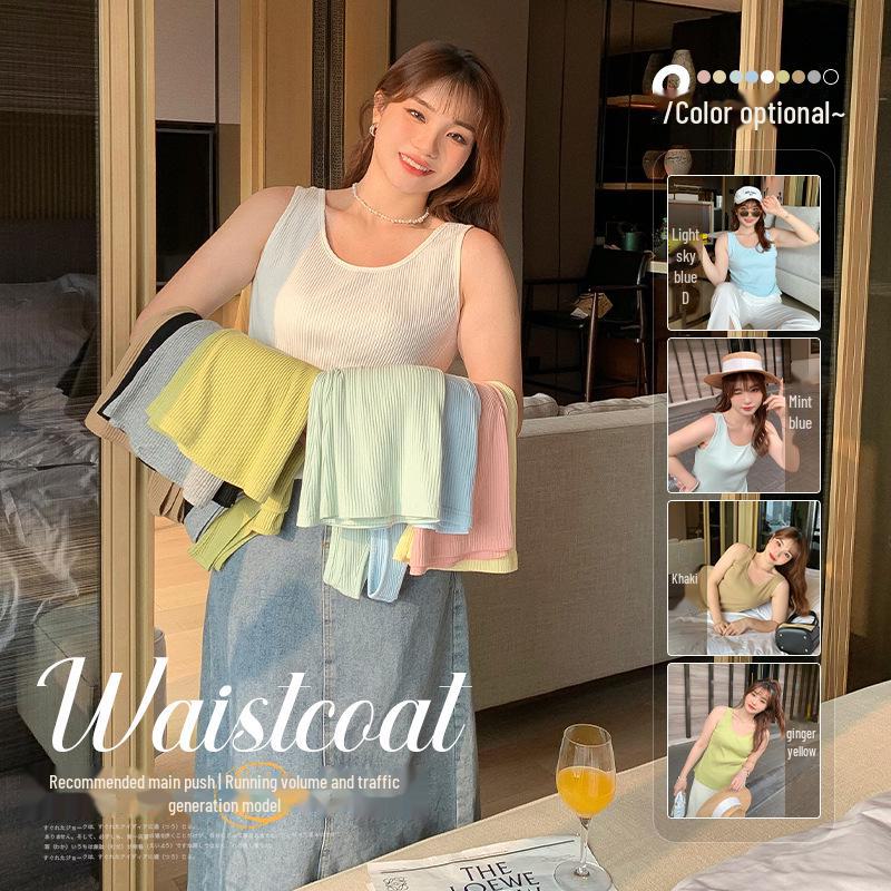 Plus Size Women's Multi-Color Knitted Tank Top - Summer Basics (61870)