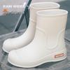 Step out in style and comfort with these fashionable waterproof rain boots, designed specifically for women. These boots feature a high anti-slip sole and a long tube design, providing excellent traction and coverage for outdoor activities in wet conditions. Made from durable PVC, the footwear ensures protection against the elements while maintaining a chic and modern appearance inspired by Korean fashion trends. Perfect for keeping your feet dry and secure during rainy days, these boots are an essential addition to your wardrobe.