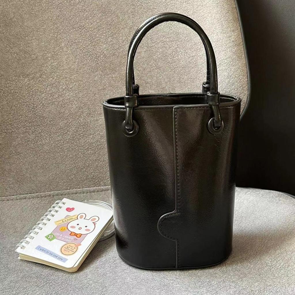 Fashionable Bucket Bag for Women's Popular High-end Simple Handbag Autumn and Winter New Black Versatile Cross-span Bag