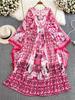New Summer Bohemian Blue And White Porcelain Print Chiffon Holiday Beach Dress Women O Neck Flare Sleeve Large Swing Long Maxi Robe