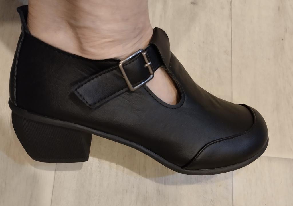 Ladies' Comfortable Coarse Heels - Black Artificial Upper, Middle Heel, Round Head with Ankle Strap, Soft Bottom Casual Shoes