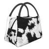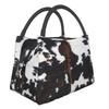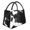 Cowhide Leather 3D Printing Resuable Lunch Box Women Waterproof Animal Fur Texture Thermal Cooler Food Insulated Lunch Bag