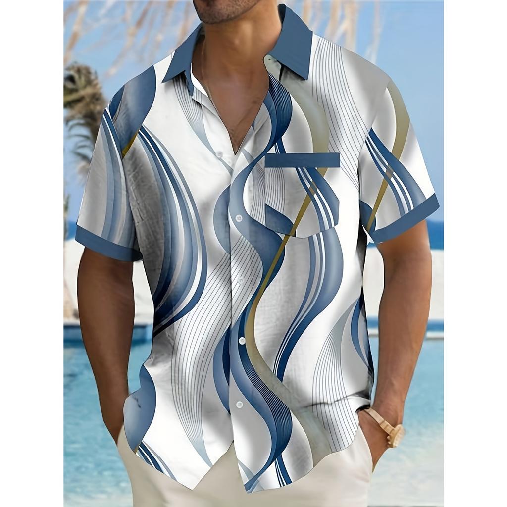Men's Geometric Pattern Printed Short Sleeve Hawaiian Shirt