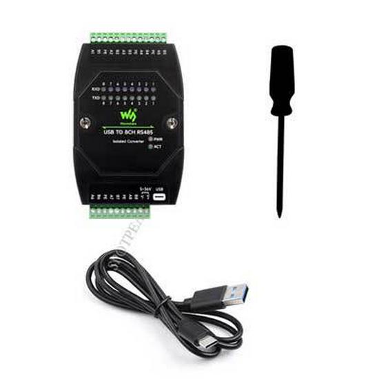 USB To 8-Channel RS485 Industrial Isolated Converter with 35mm Rail/Stack Installation Support