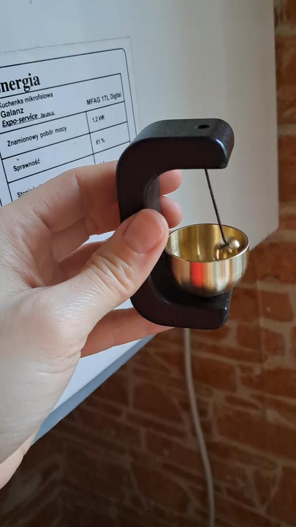 A nice and high-quality bell. It doesn't want to hang on the front door, but it fits on the refrigerator. Very beautiful.