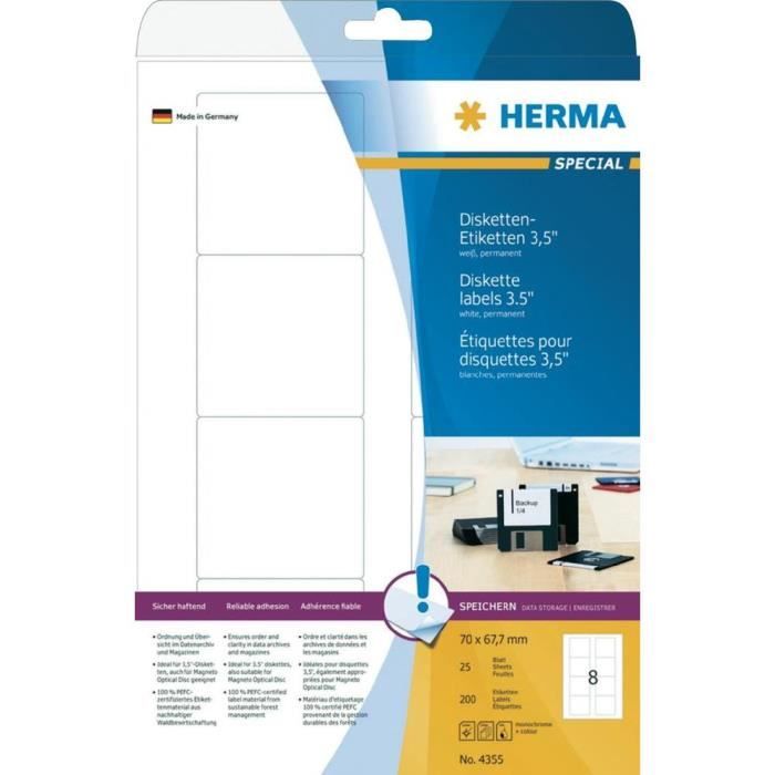 Labels for 3.5" Floppy Disks - Herma - 4355 - 200 Pcs - White - 70 X 67.7 Mm