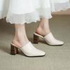 Krazing Pot Mules Cow Skin Basic Clothing Spring Summer Size 43 Size 42 Sandals Women Thick Heels Women Square Toe Slip On Pumps