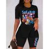 Sneaker Girl Letter Printed Short Sleeved Suit Fashion Women Tops & Shorts Two Pieces Set Summer Casual O-Neck Oversize Clothes
