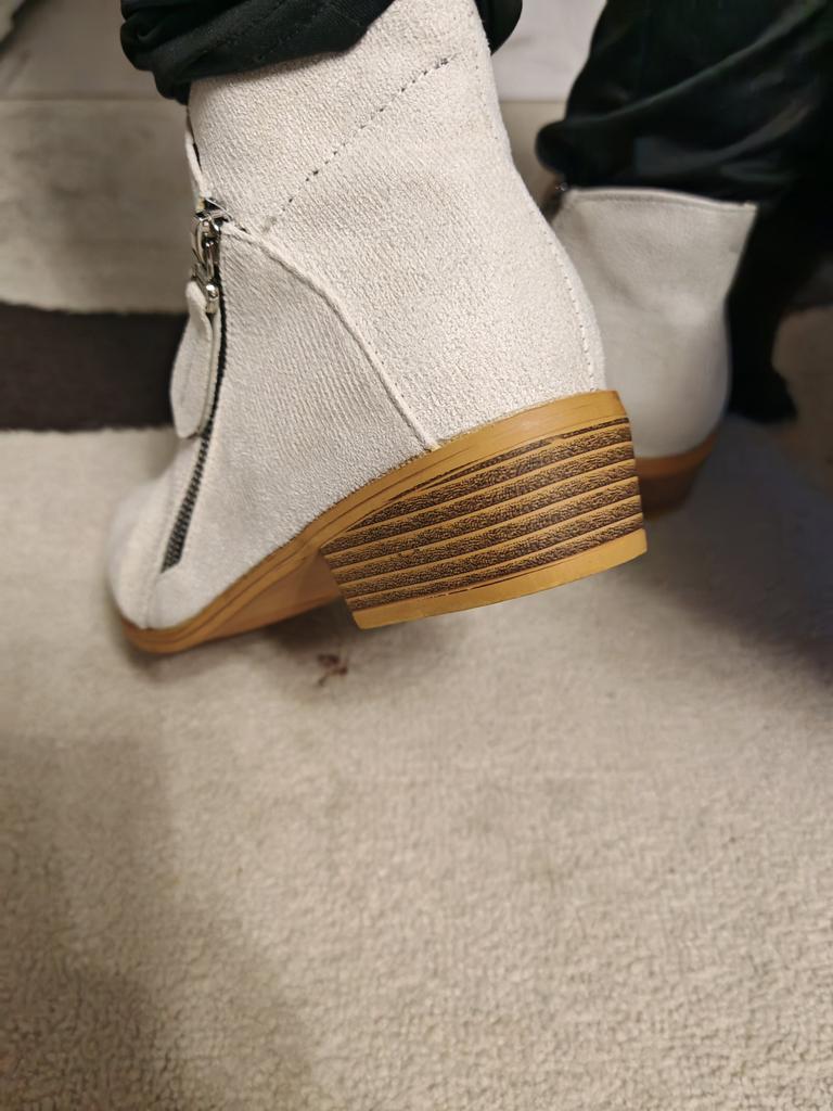 The color and material of the ankle boots do not match the specifications stated in the advertisement.