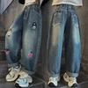 Girls' Jeans Dad's Pants Stylish Embroidery Straight Tube Radish Girls' Big Boys' Harem Pants