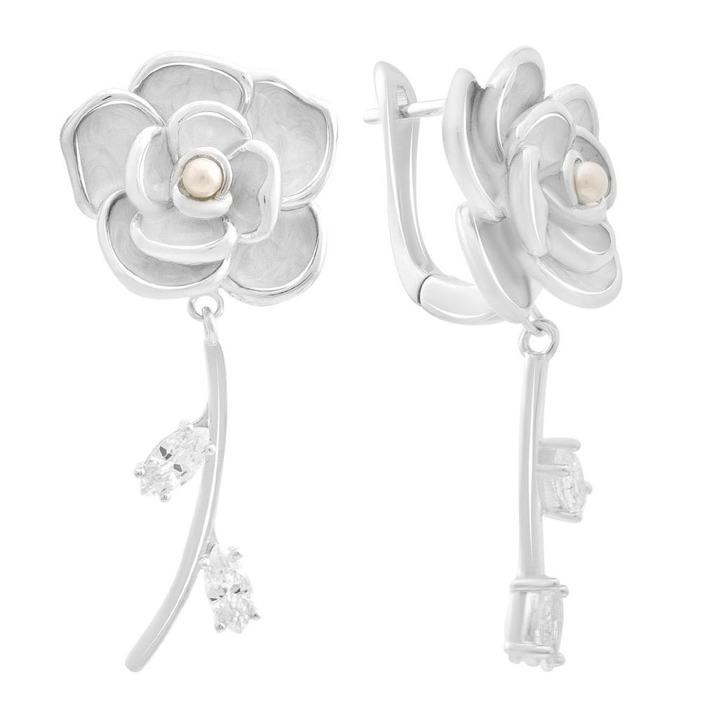 silver earrings with natural pearls, mother-of-pearl