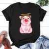 Cute Pig Print T-shirts For Women Summer Lovely Short Sleeve Casual Round Neck T-shirts Ladies Creative Personalized Tops