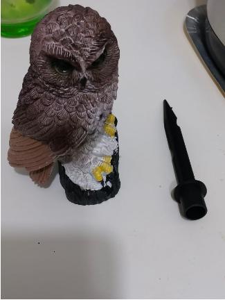 The owl is cute, but there is no hole where the mount (stand) is inserted, we will have to make it ourselves...
