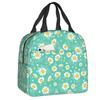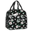 Floral Daisy Print Insulated Lunch Bag for Women Chamomile Flowers Cooler Thermal Lunch Tote Box Portable Picnic Food Bento Bags