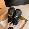 Black Platform Small Leather Shoes Women's 2024 Autumn New One-pedal British Style Loafers Retro Versatile Single Shoes