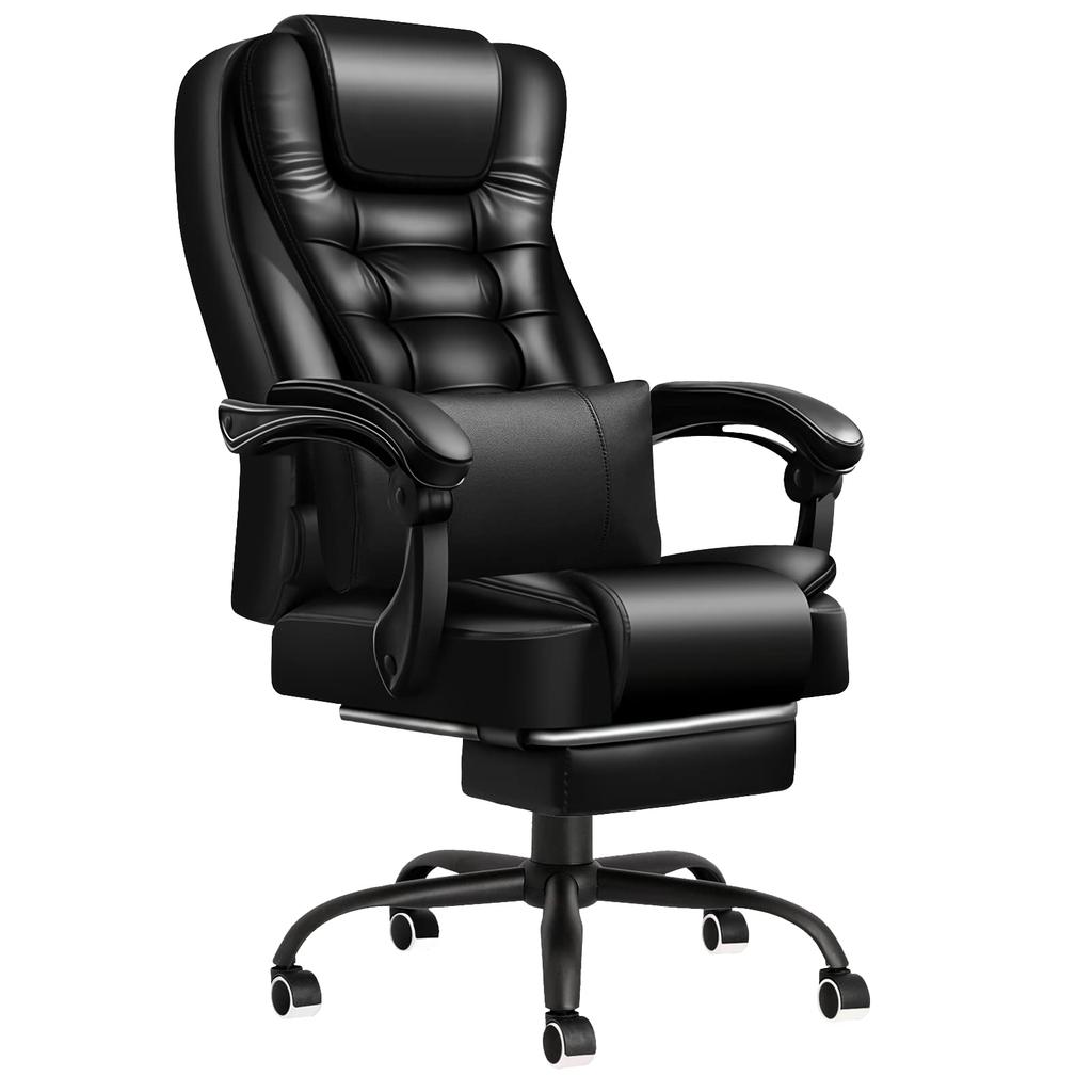 [Multi-functional and convenient to use] With a simple lever operation, the backrest can be adjusted or fixed at any angle within the range of 90-135°. It has a height adjustment function that allows it to rise and fall to fit your body shape, and a 360-degree rotation function that allows you to easily move it while sitting. The movable armrest is gentle on the elbows, and the leather upholstery is soft and pleasant to the touch. Added retractable footrest and movable lumbar support. You can change the sitting position to suit a variety of working styles and choose the most comfortable position, allowing you to relax and enjoy your breaks.