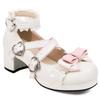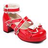 Sweet Bow Low Heels Women's Lolitas Shoes Spring Ankle Strap Red White Heeled Wedding Office Party Shoes Female Large Size 45