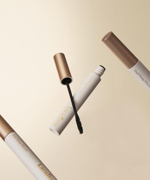 KARADIUM Dual Fixing Mascara is a dual-functional mascara that creates both volume and sexy curling effects. As a combination of mascara and fixer, this dual type elegantly lengthens and volumizes each lash without clumping. After applying the mascara, applying the fixer ensures that the lashes appear naturally spread out, while maintaining volume and curl for a long time. The mascara brush is designed to apply evenly from the roots to the tips, easily covering even short lashes. The fixer brush tidies the gaps between lashes for a neat finish without clumping.