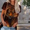 Women Summer T Shirt Tiger Print Retro Fashion Short Sleeve Tees Casual Printed Tops