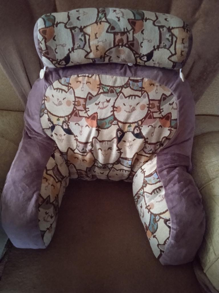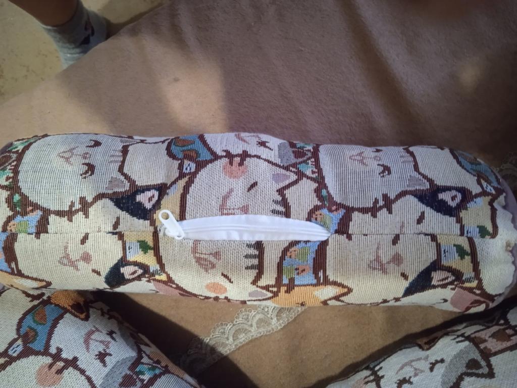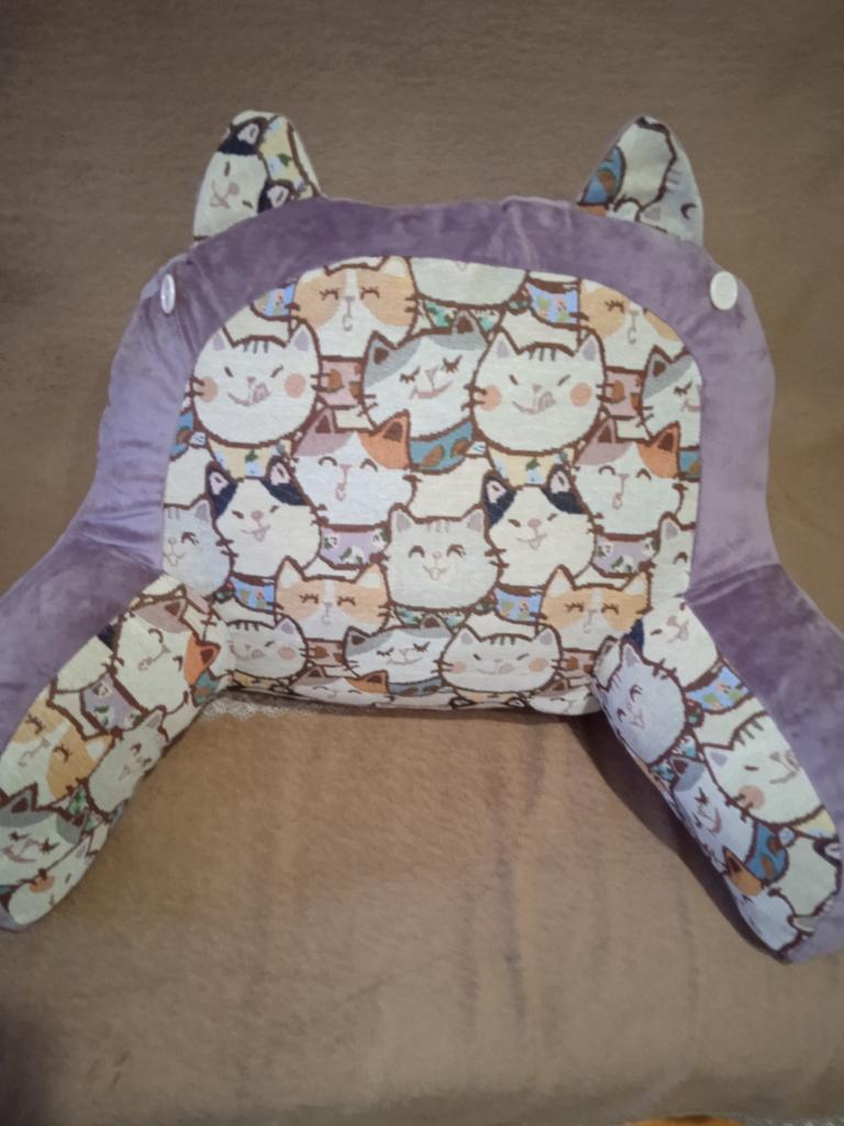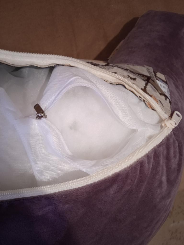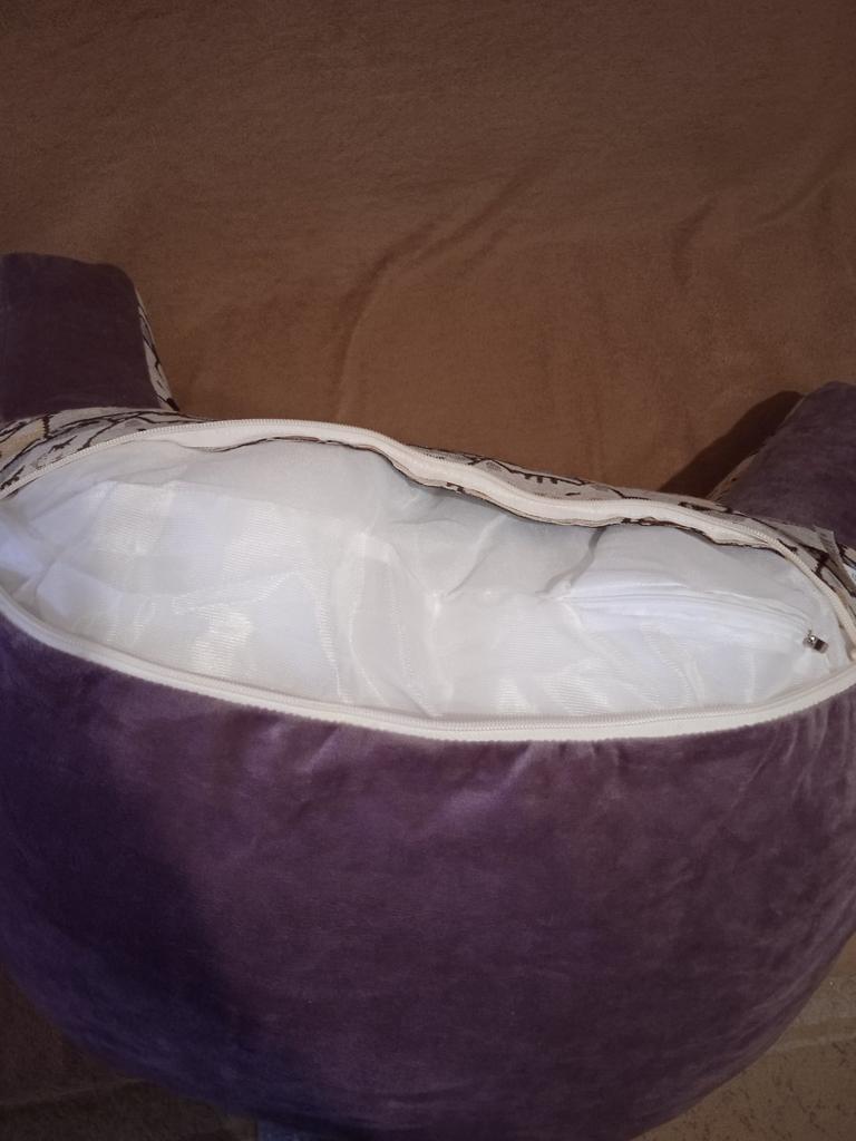 The pillow was delivered intact, although there were holes in the cellophane packaging. I ordered a gray pillow, as in the photo, but received a green one. But the most disappointing were the white buttons and the white elastic band. It's stuffed moderately and unevenly. The size is smaller than expected.