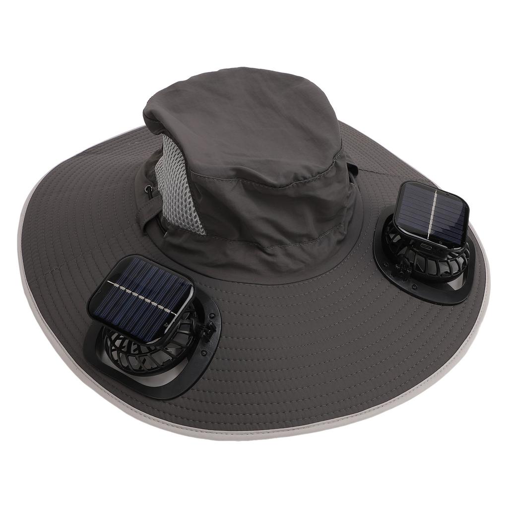 Mens Sun Hat with 2 Solar Fans Nylon UPF50 Wide Brim Fast Drying USB Rechargeable Summer Cooling