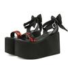Gdgydh Buckle Strap Women Platform Sandals Retro Lace Patchwork Thick-Soled Big Bow Waterproof Summer Chunky Heeled Sandals