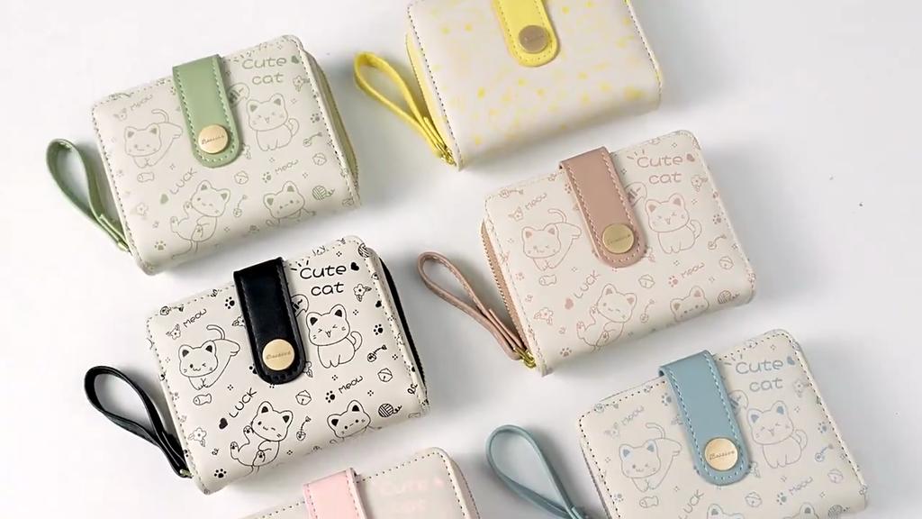 Cute Cat Girls Wallet Short Student Id Bank Card Holder Money Bag Zipper Wallets for Women Key Storage Purse Coin Purse