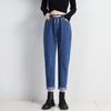Korean Women's Straight-leg Casual Elastic Waist Tie High Waist Student Jeans Women's Loose Nine-point Dad Pants Women