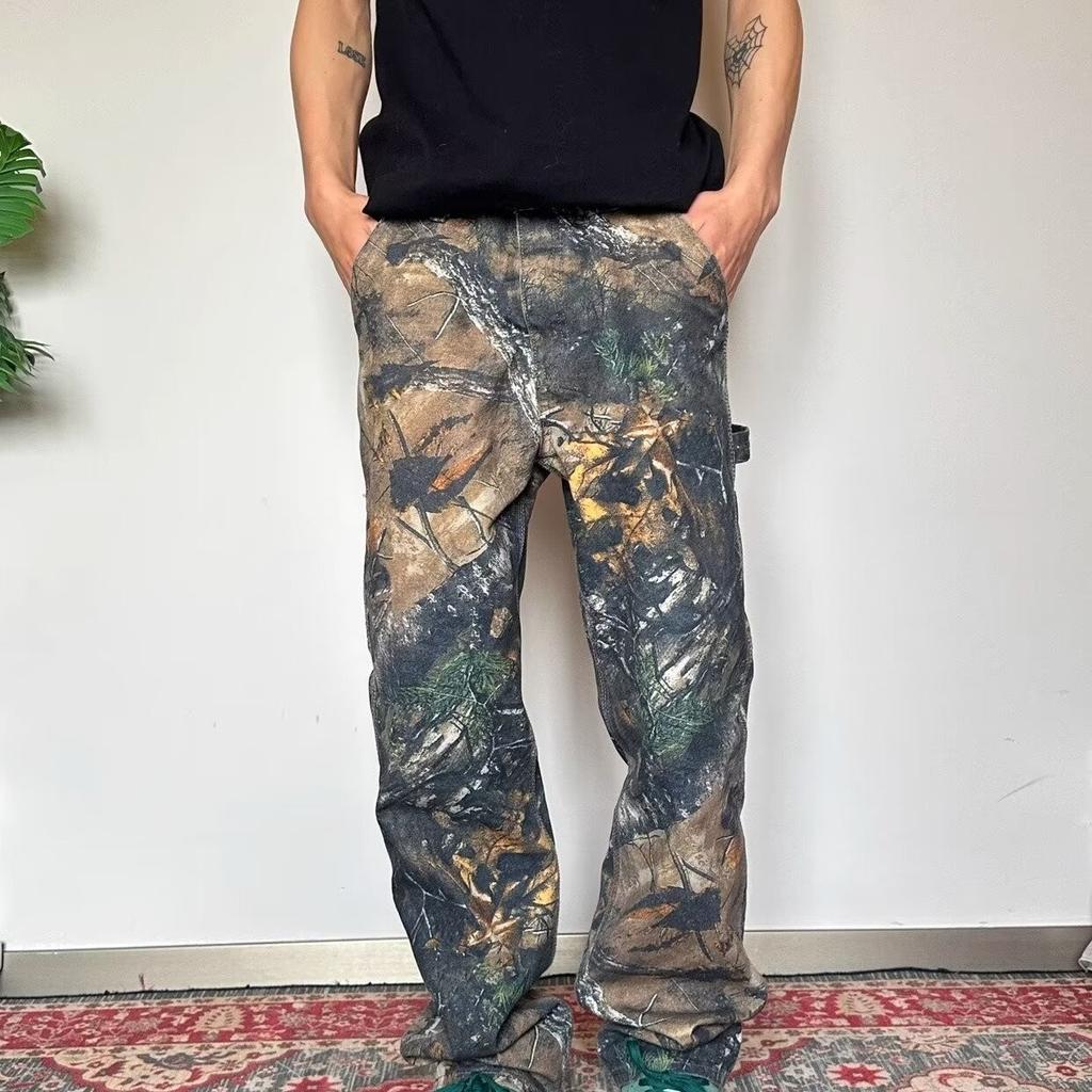 Retro American Branch Camouflage Graffiti Jeans Men's Style Niche Design Versatile Straight Logging Trousers