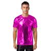 Mens Metallic Shiny Performance Top with Round Neck and Short Sleeves for Club Shows or Dance Parties