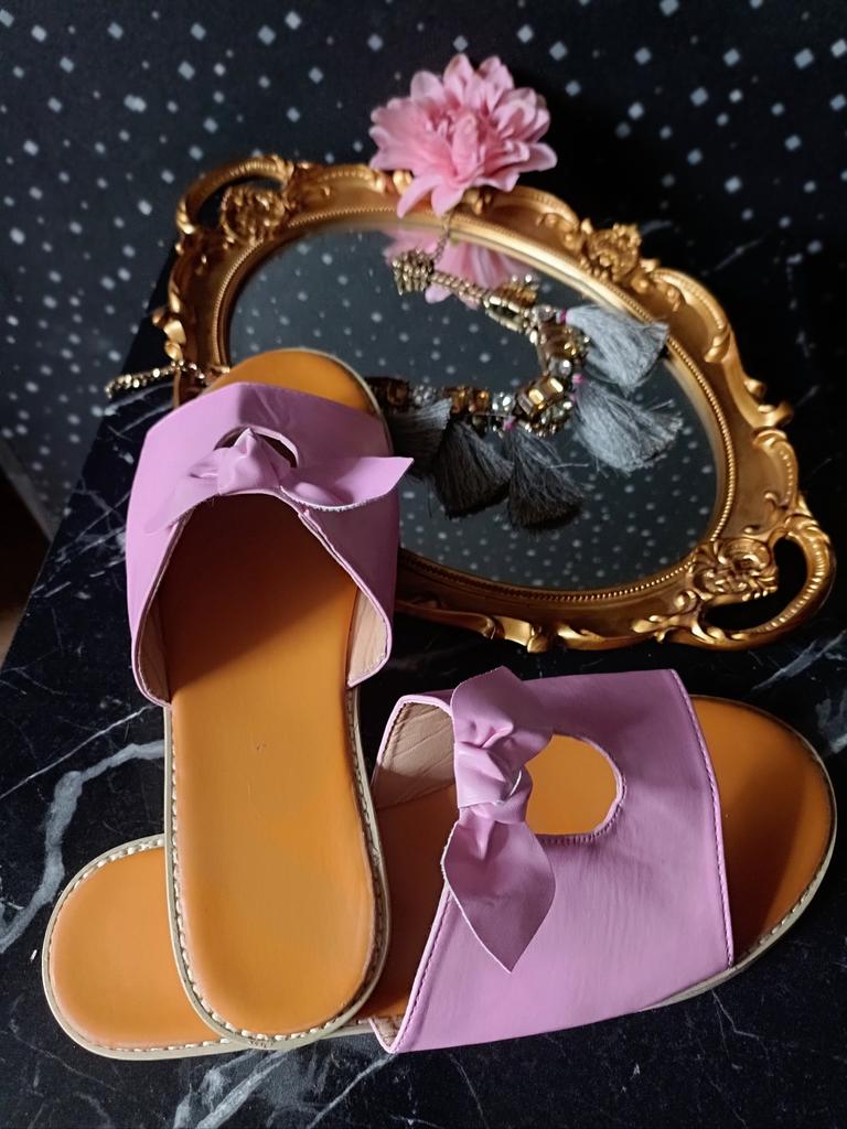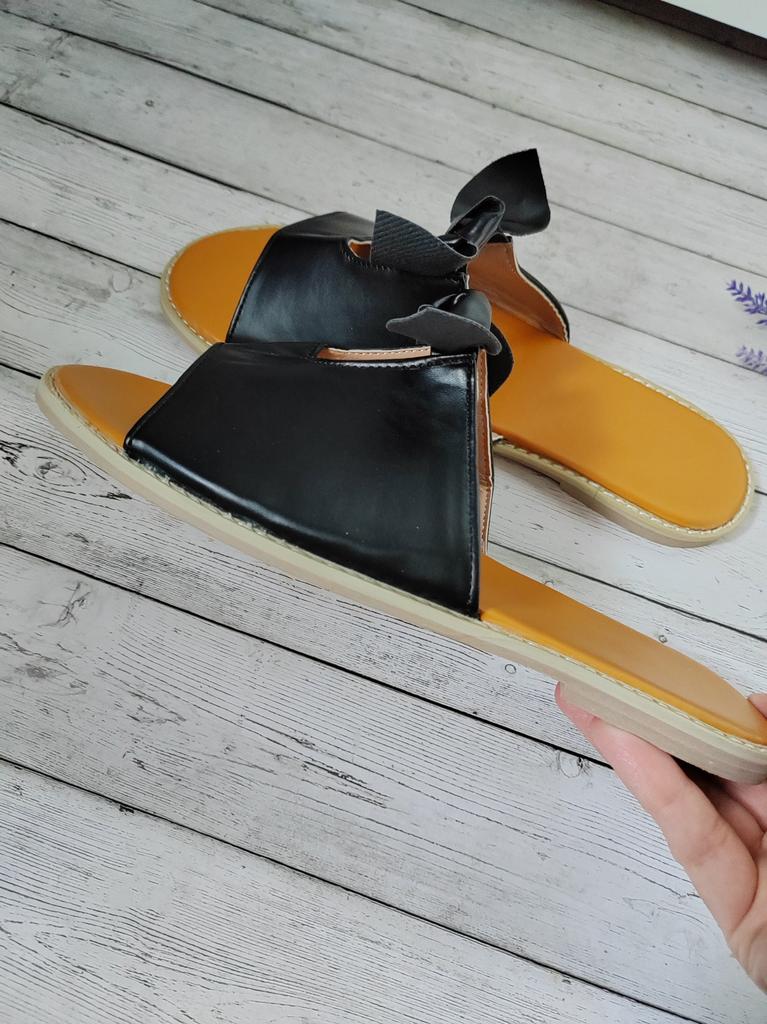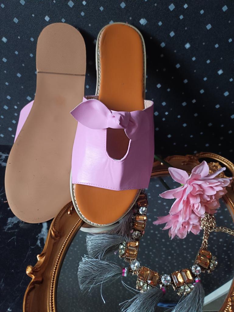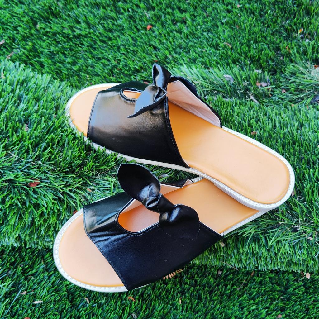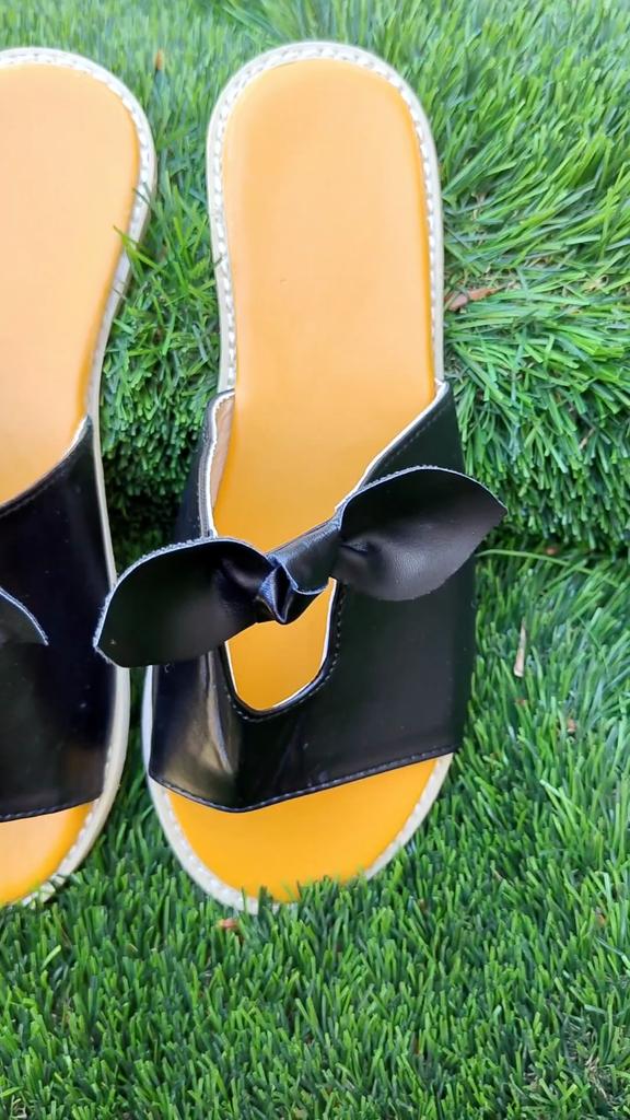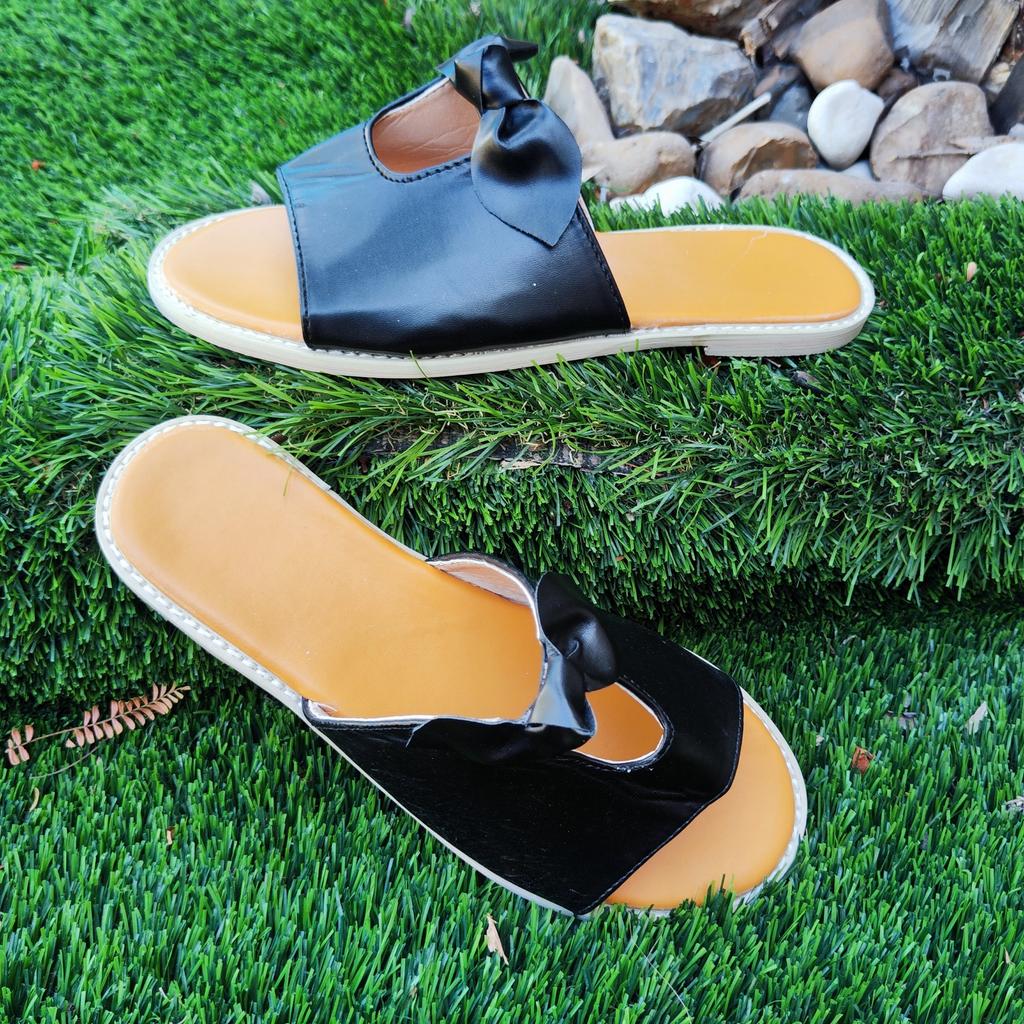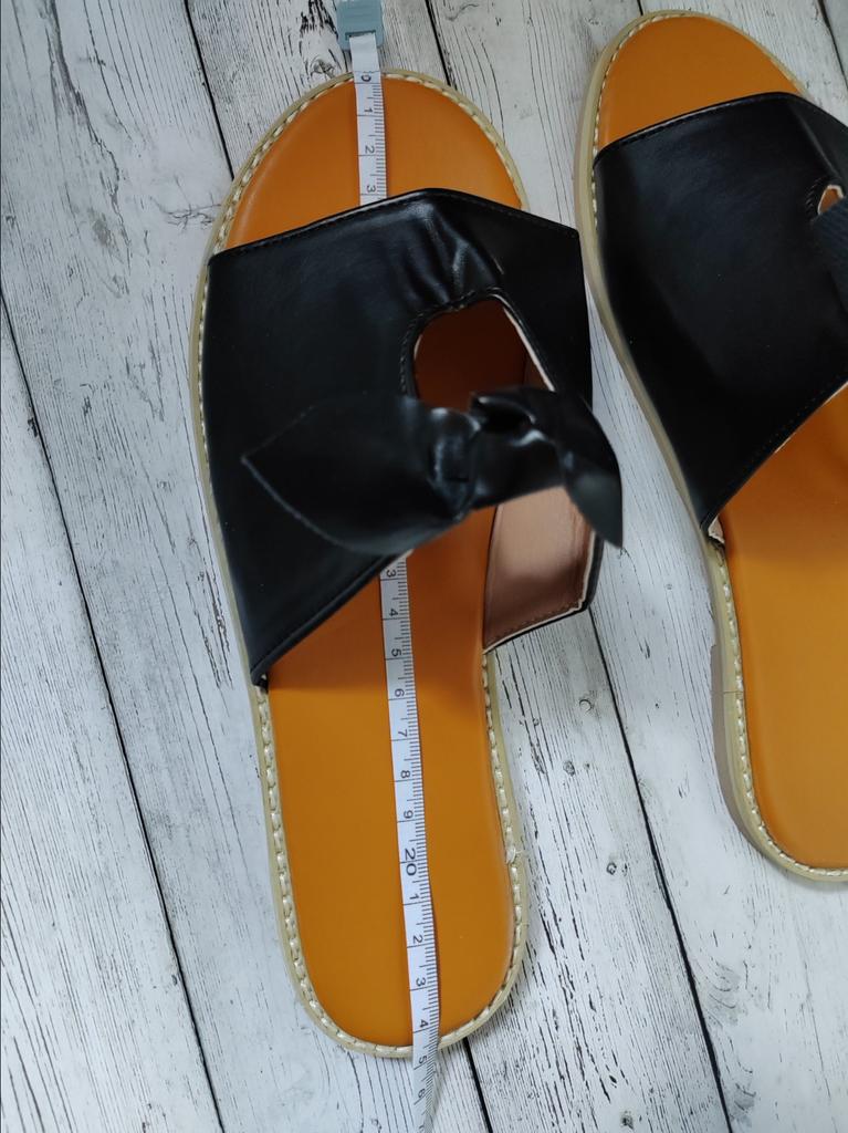 summery flat slippers Women's casual slippers with open toe and bow tie The shoes are very comfortable and beautiful. Sizes can be ordered: 35-43 I would suggest ordering one size up. The shoes arrived to me with fast and secure delivery π¦