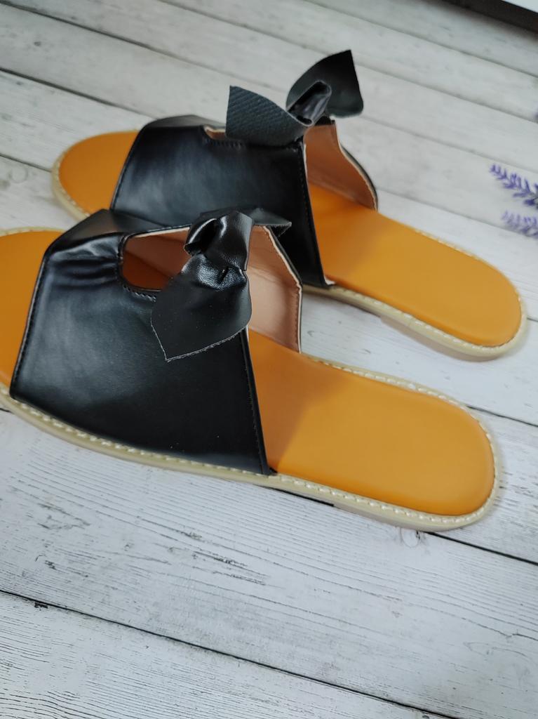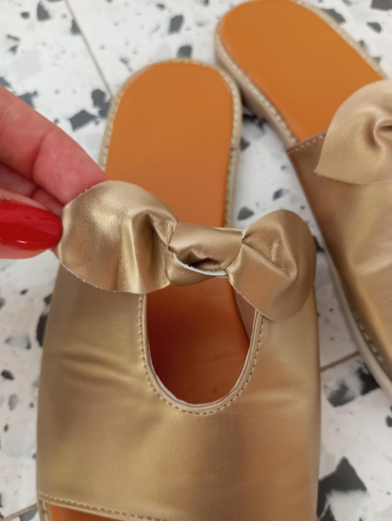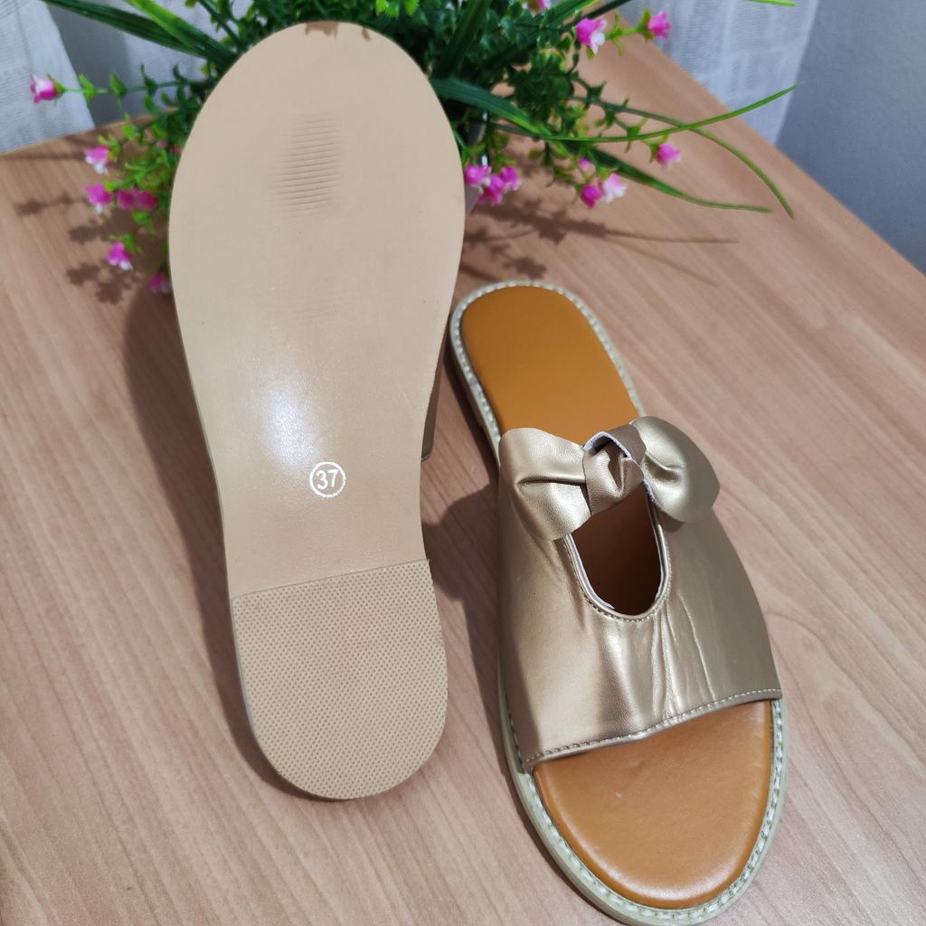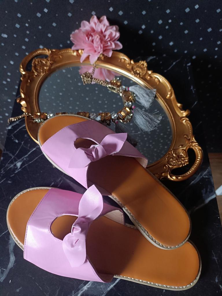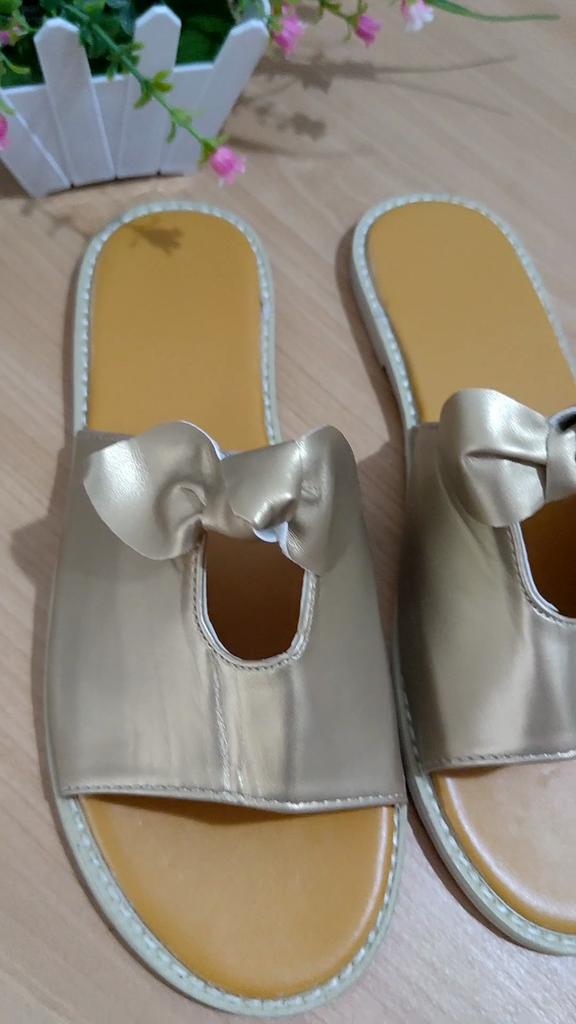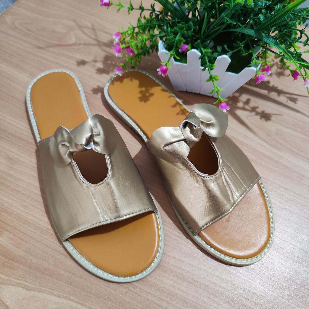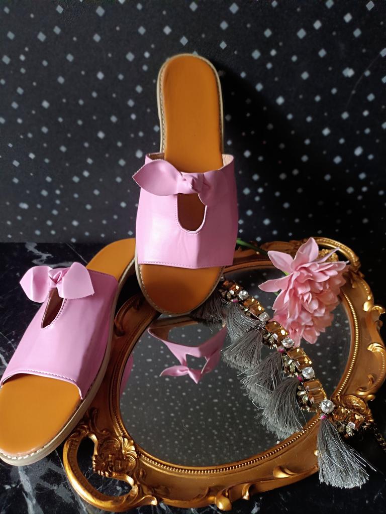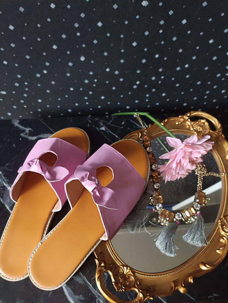 summery flat slippers Women's casual slippers with open toe and bow tie The shoes are very comfortable and beautiful. Sizes can be ordered: 35-43 I would suggest ordering one size up. The shoes arrived to me with fast and secure delivery π¦