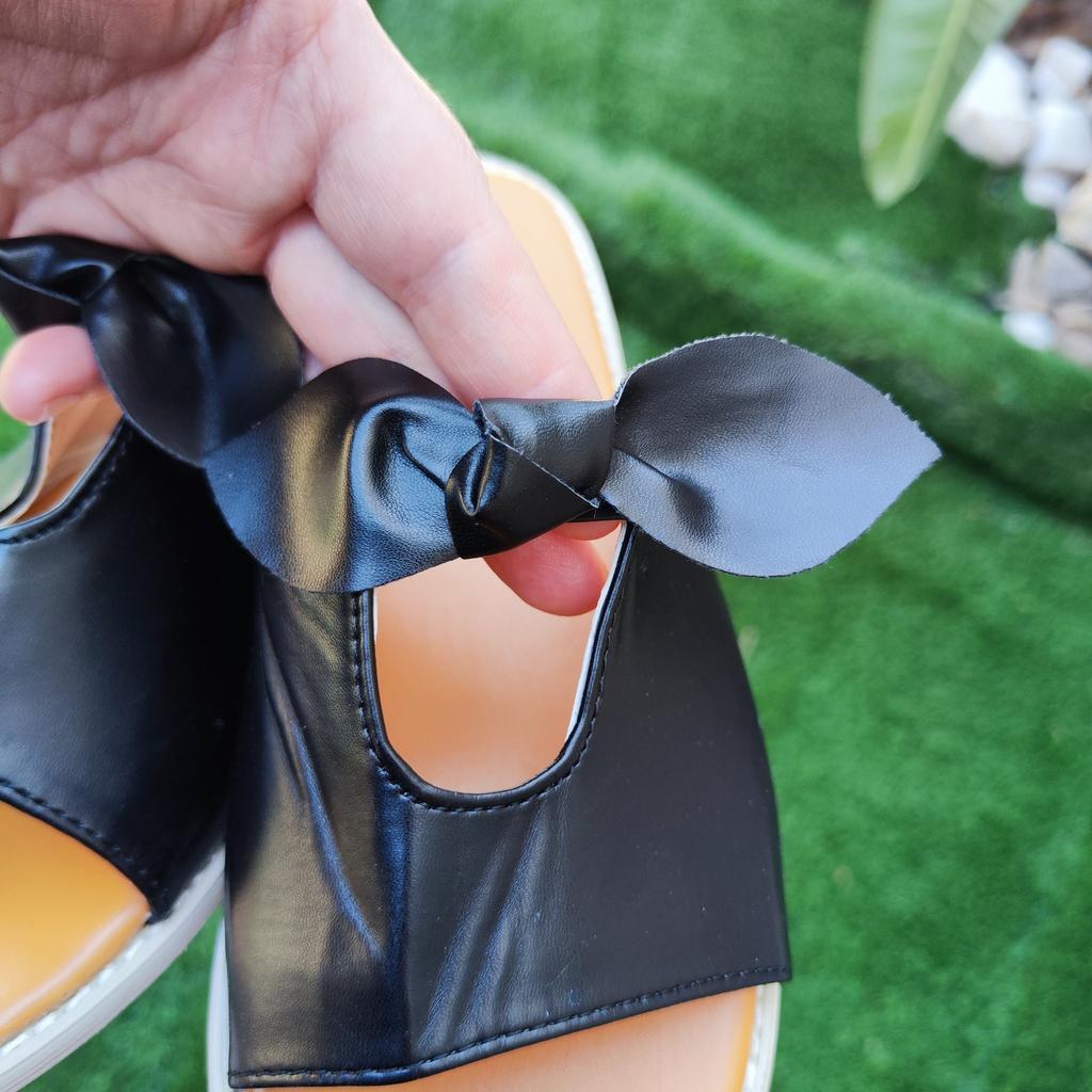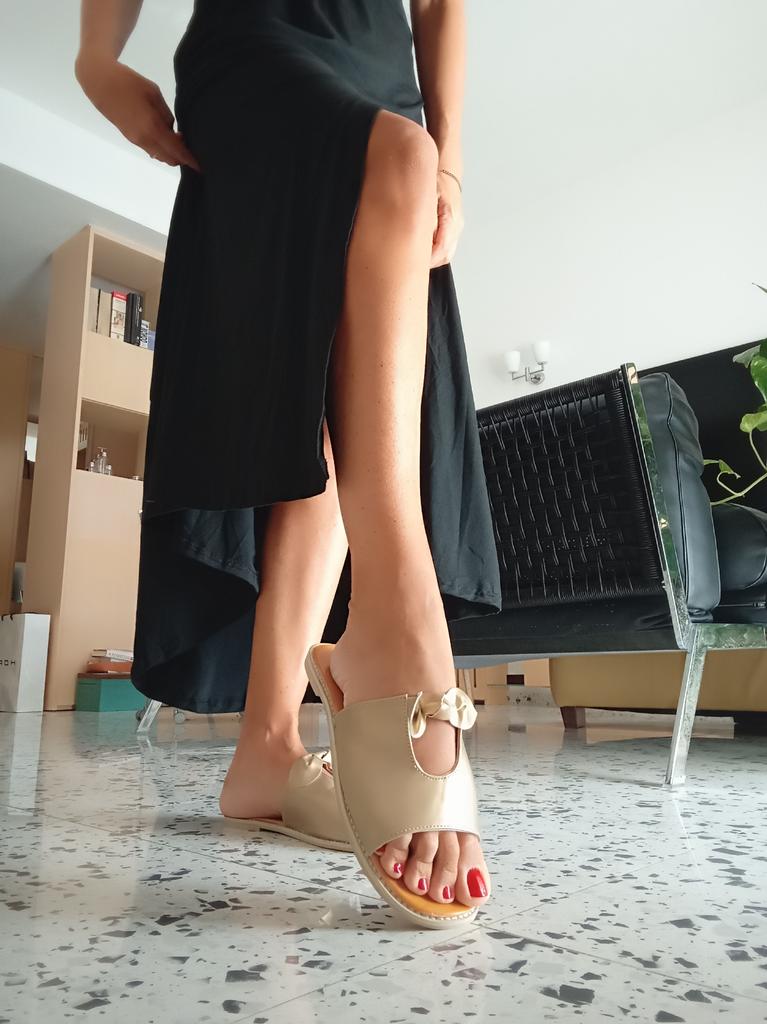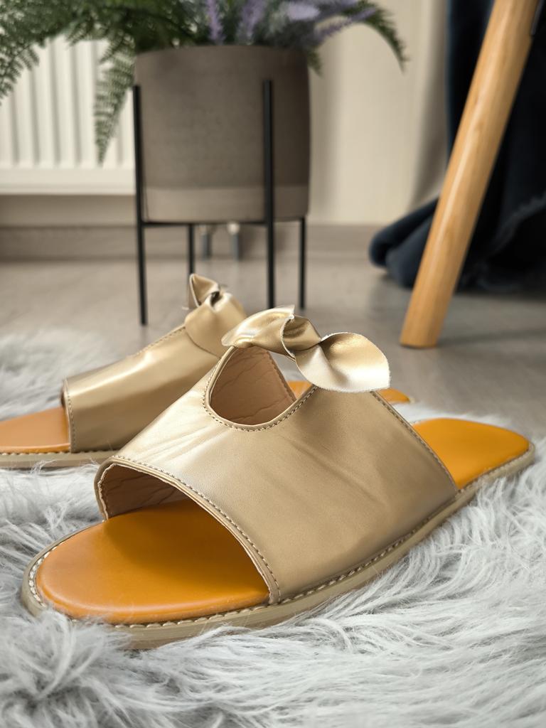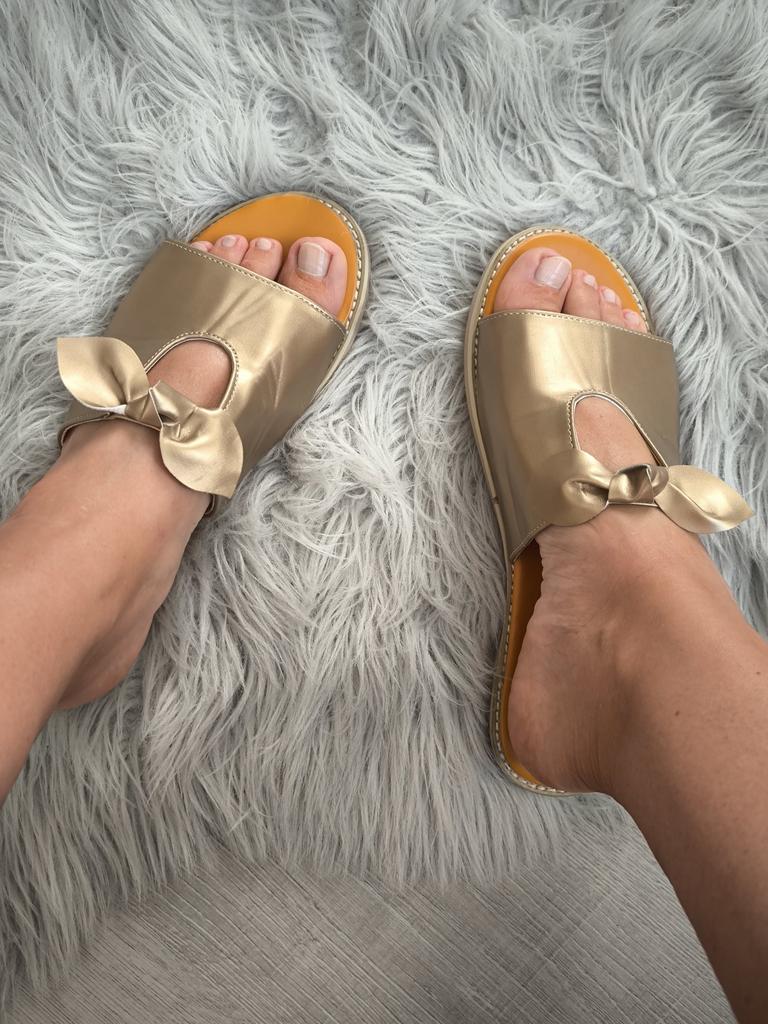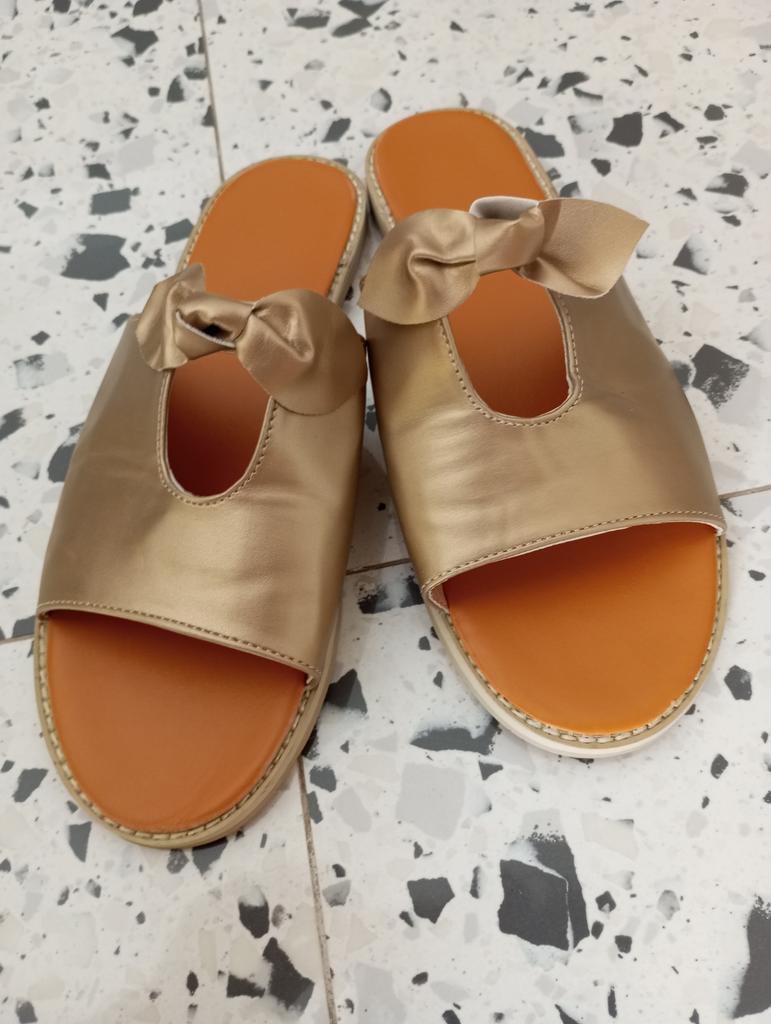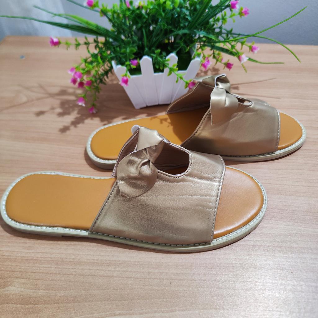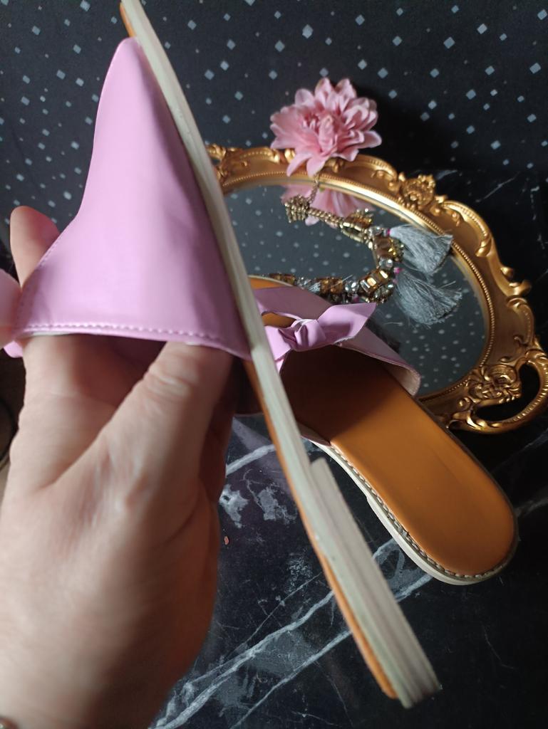 summery flat slippers Women's casual slippers with open toe and bow tie The shoes are very comfortable and beautiful. Sizes can be ordered: 35-43 I would suggest ordering one size up. The shoes arrived to me with fast and secure delivery π¦