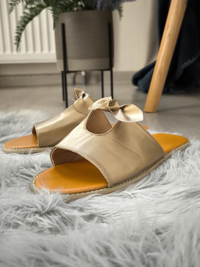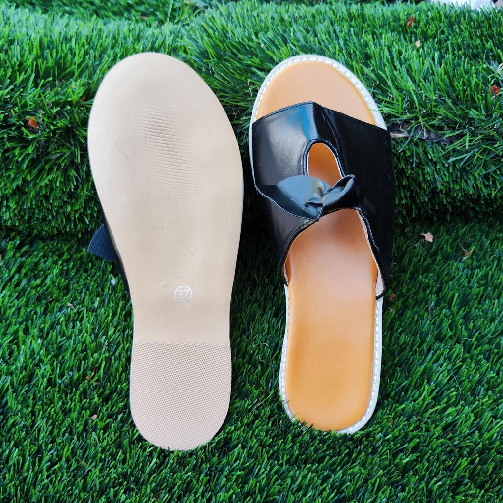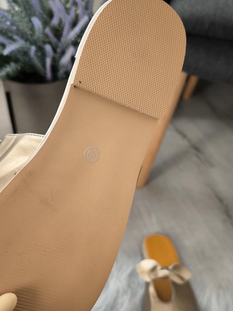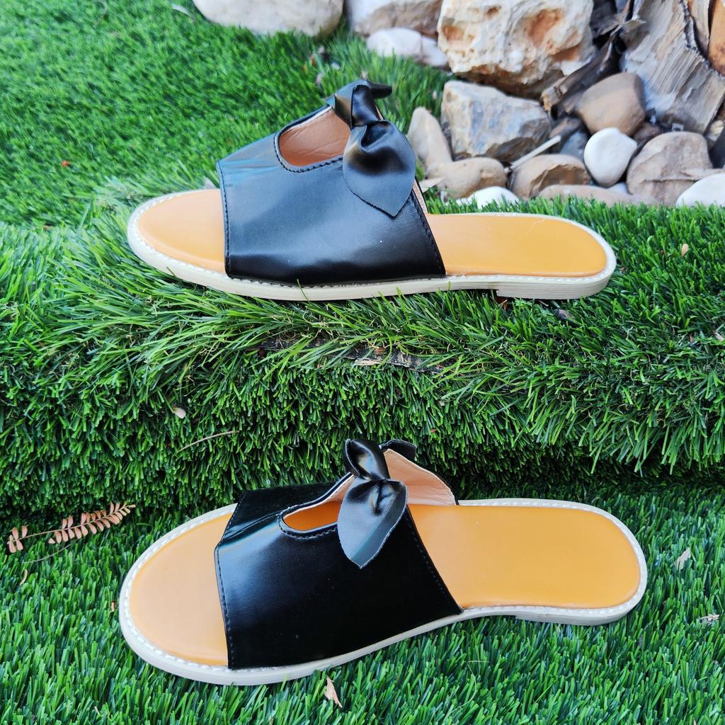 Women's summery slippers with a bow - *Style*: Flat, casual, and summery slippers with an open toe and a cute bow design. - *Comfort*: Made of *PU* material (both the upper and the inside), easy to put on with a *single shoulder strap* (slide type). - *Sole*: Rubber, flexible and comfortable for walking inside the house. - *Closure method*: Laceless - just slip the foot in. - *Size Range*: 35β43, including adjustment by precise cm (22.5 to 26.5 cm). - *Recommendation when choosing a size*: If the foot is wide β it is better to choose one size larger. *Advantages*: β Ease and convenience β Suitable for home and everyday wear β Feminine design with a bow *Disadvantages*: β Not suitable for prolonged outdoor walking β PU material is less durable than real leather *Who is it suitable for?* For women looking for beautiful, lightweight, and comfortable slippers for summer β especially those who love sweet and feminine design.