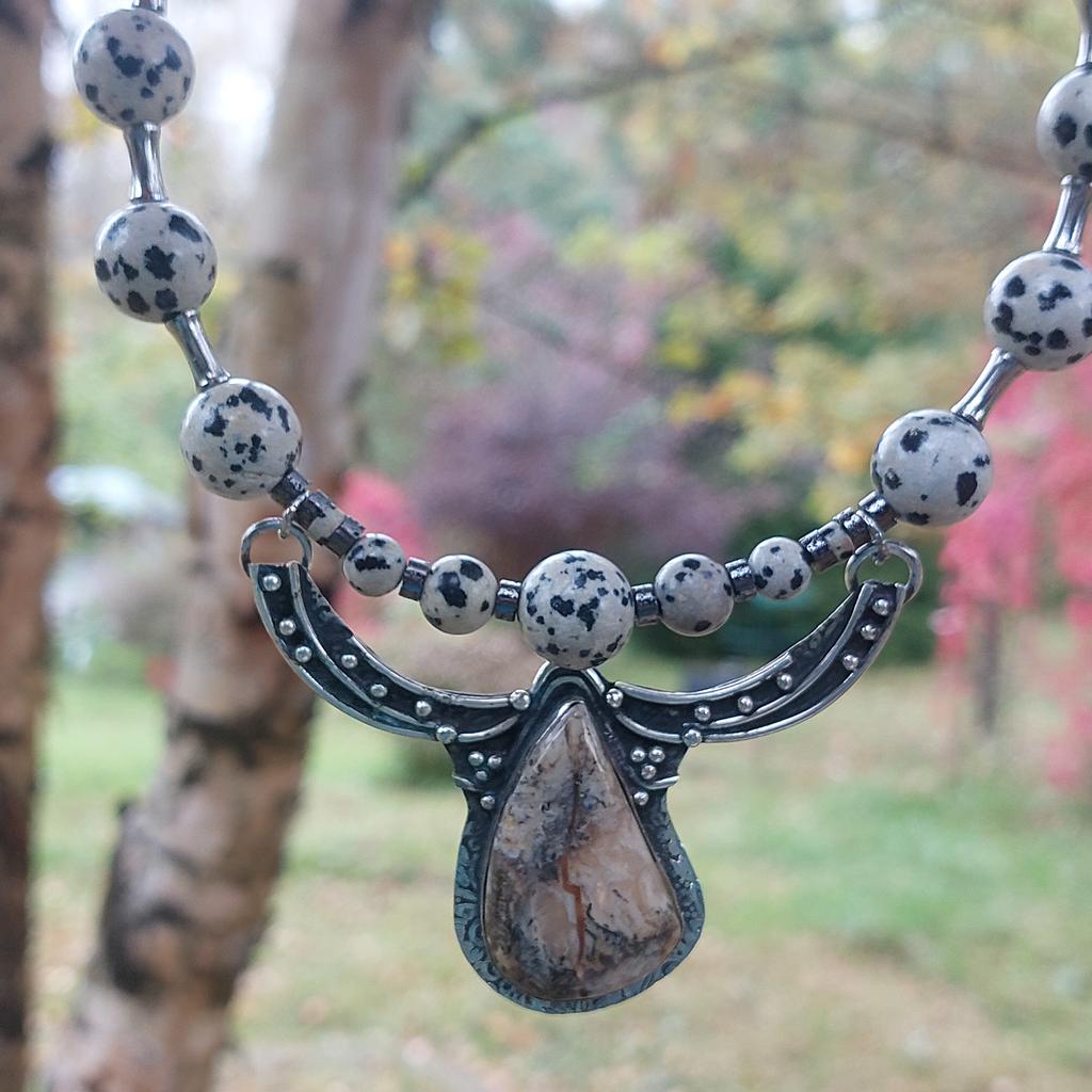Russian Dendritic Handmade 925 Sterling Silver Gift Pendant 2.68" W0V30